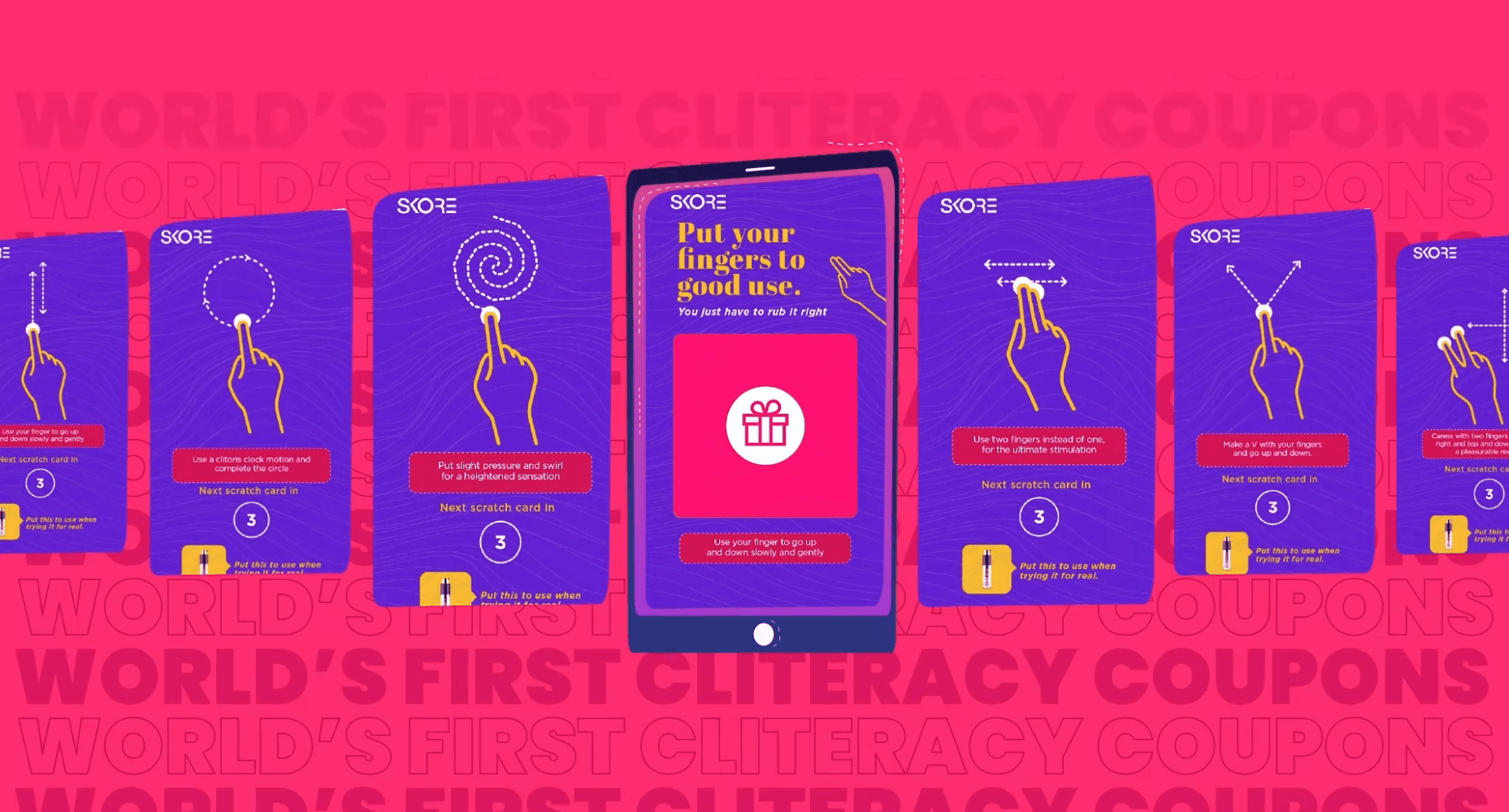 We created digital scratch coupons. Each coupon had a different scratching pattern. Circular. Back and forth. Pulsing. These weren't random. They mimicked actual techniques that stimulate the clitoris.
